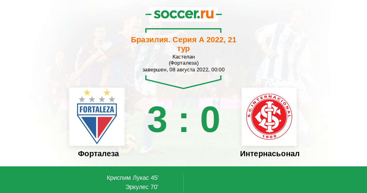 84' (3:0) Робсон дос Сантос (58) (Мойсес Вейра (56))