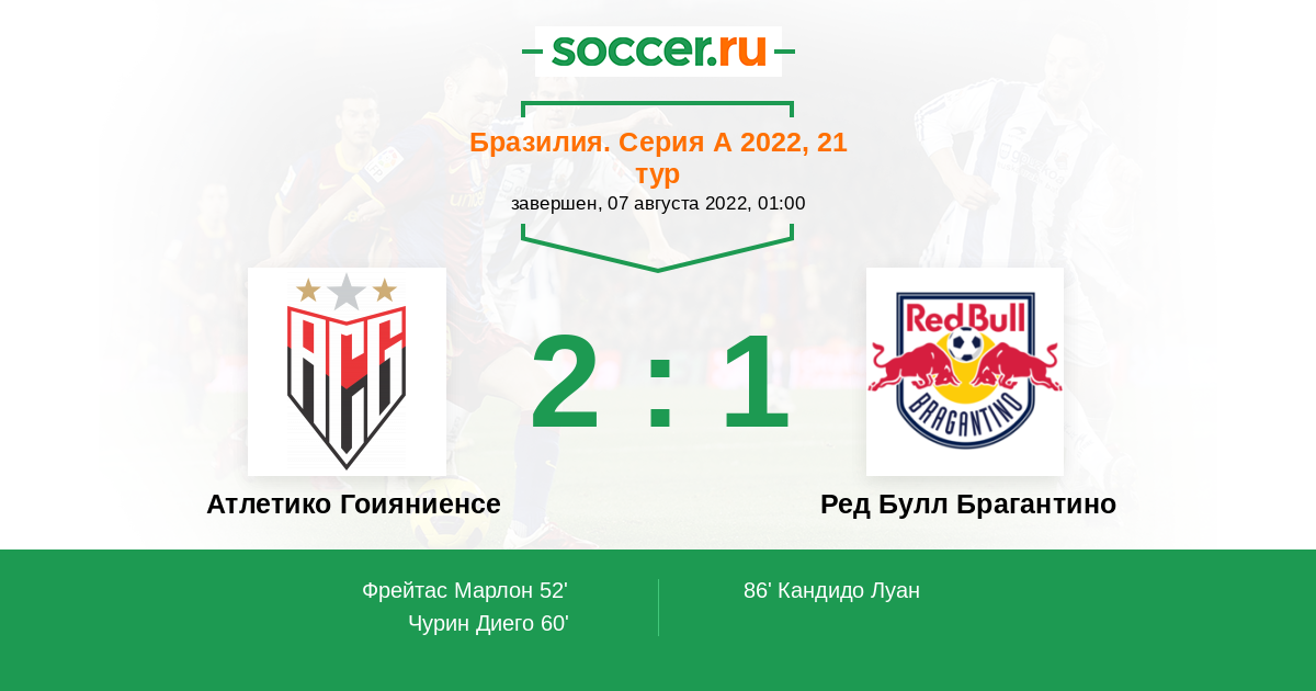 Протокол матча Атлетико Гоияниенсе против Ред Булл Брагантино