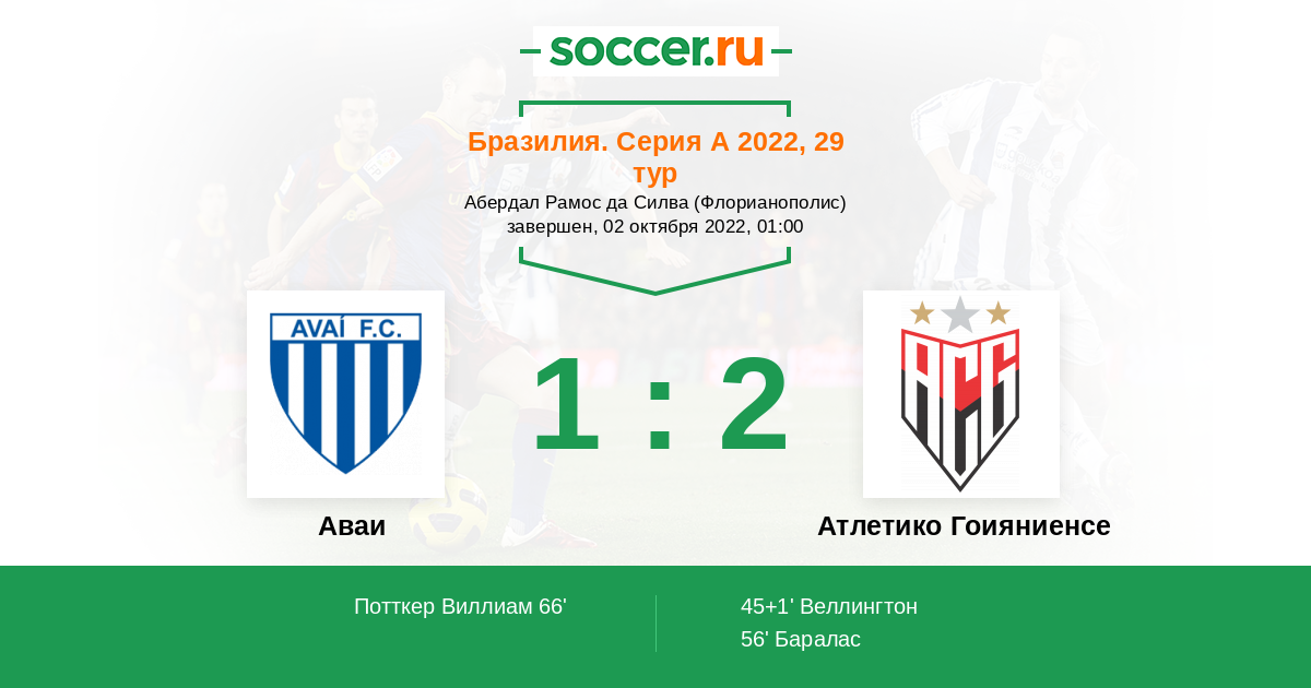 Протокол матча Аваи против Атлетико Гоияниенсе