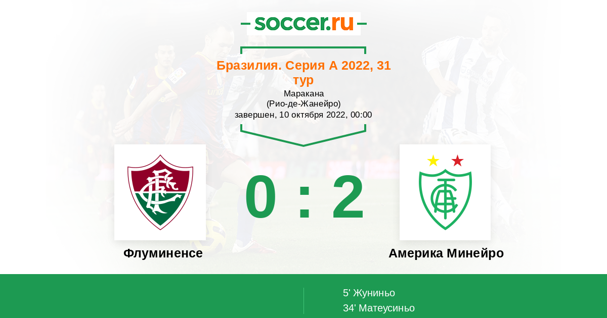 Протокол матча Флуминенсе против Америка Минейро