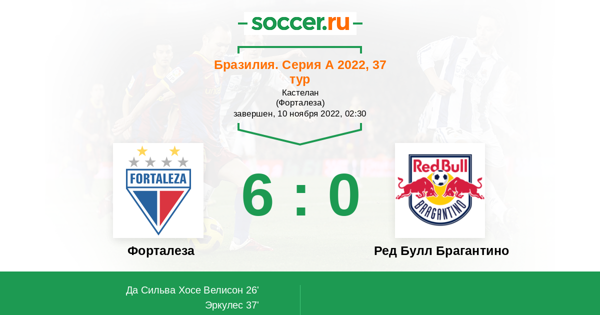 Протокол матча Форталеза против Ред Булл Брагантино