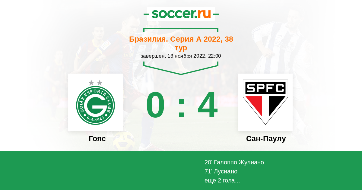 Протокол матча Гояс против Сан-Паулу