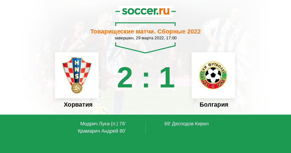 Протокол матча Хорватия против Болгария