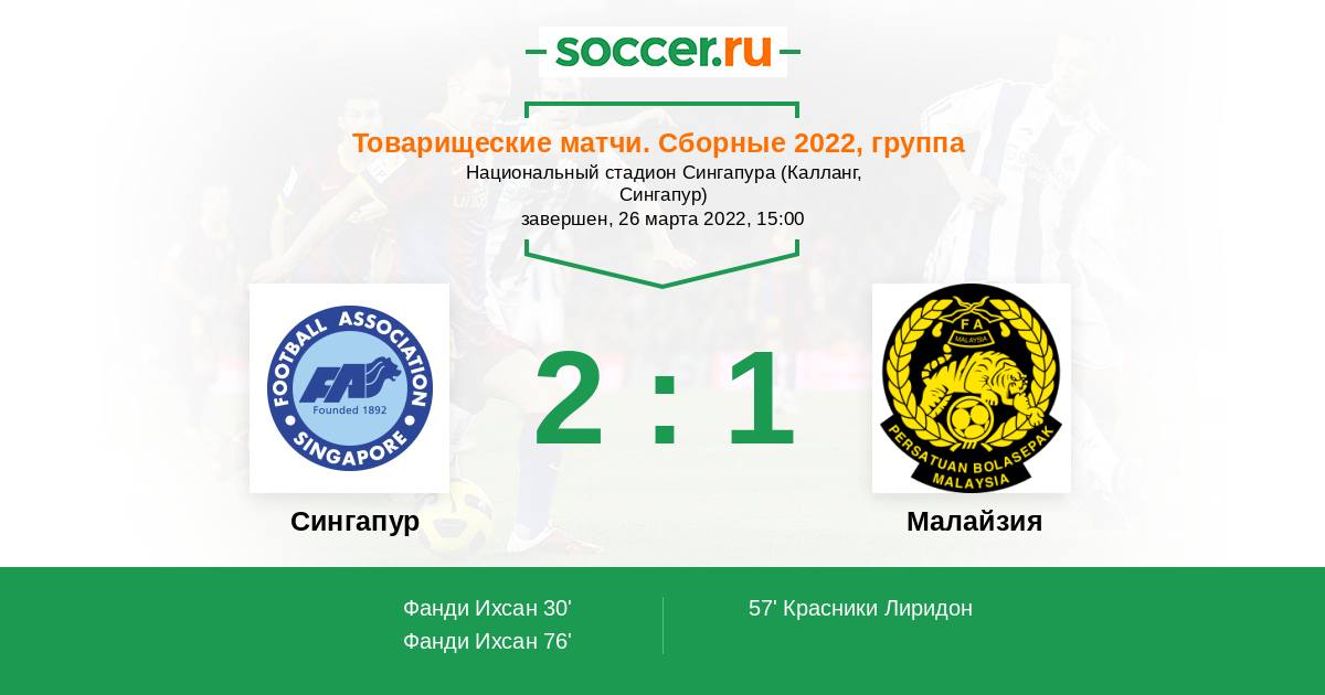 Протокол матча Сингапур против Малайзия