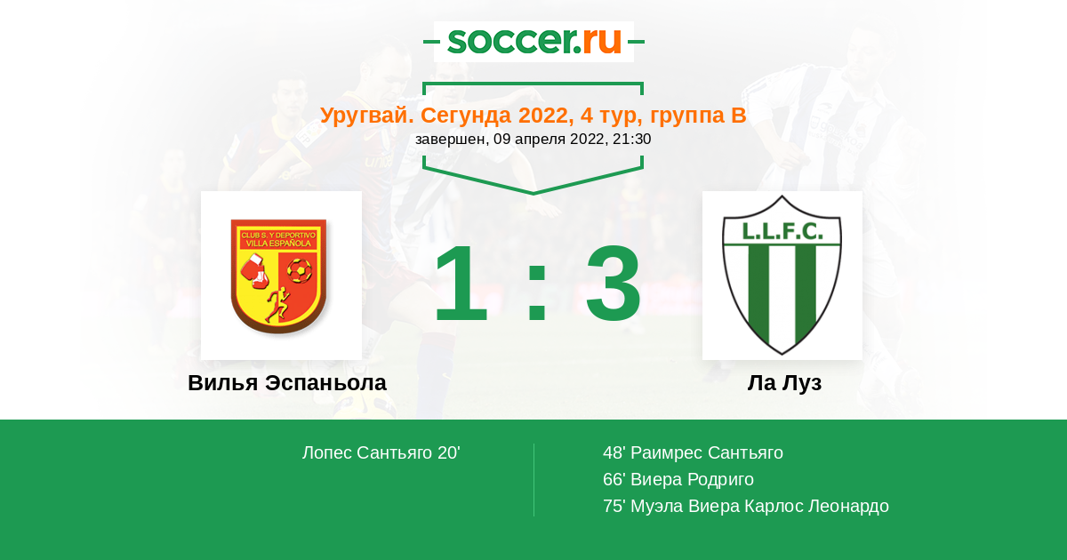 Протокол матча Вилья Эспаньола против Ла Луз