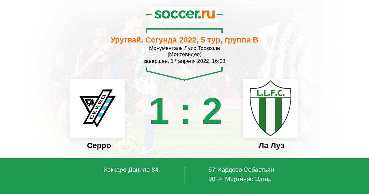 Протокол матча Серро против Ла Луз