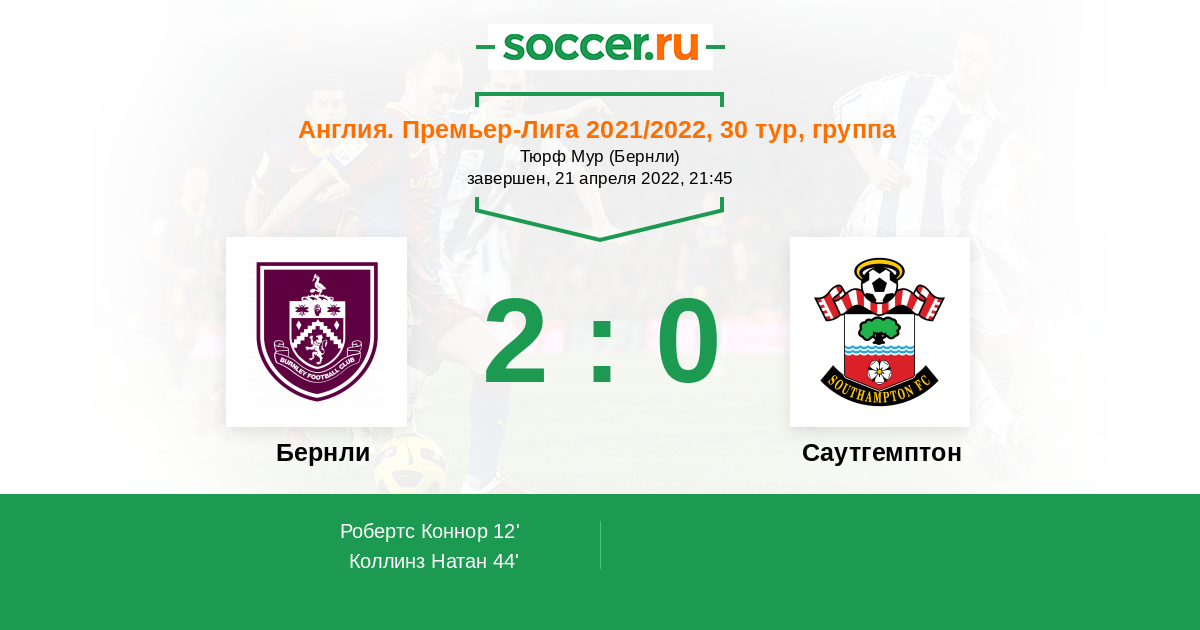 Протокол матча Бернли против Саутгемптон