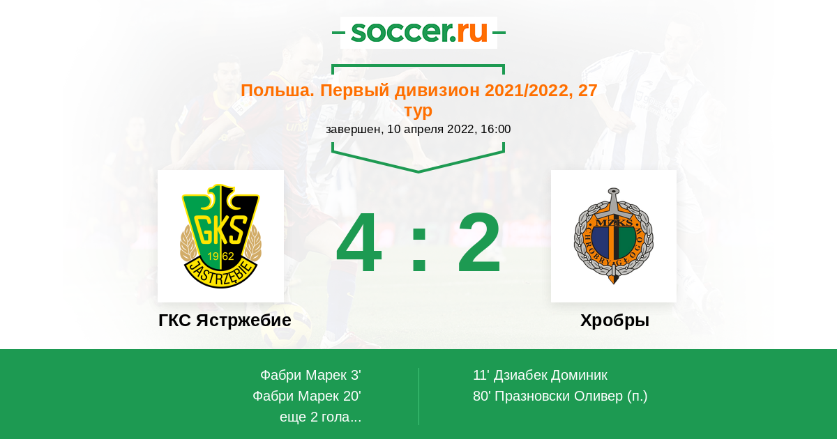 Протокол матча ГКС Ястржебие против Хробры