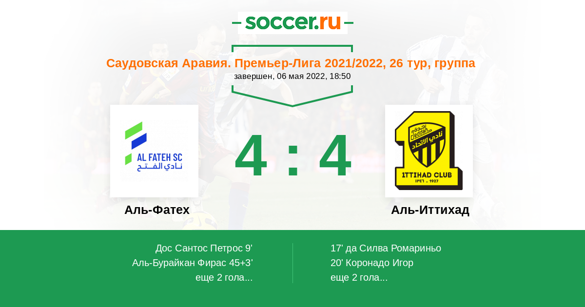 Протокол матча Аль-Фатех против Аль-Иттихад