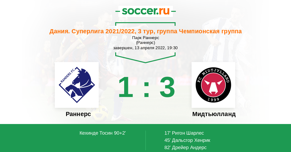 Протокол матча Раннерс против Мидтьюлланд