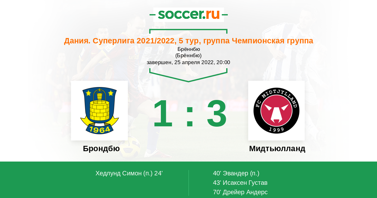 43' (1:2) Исаксен Густав (45) (Дрейер Андерс (36))
