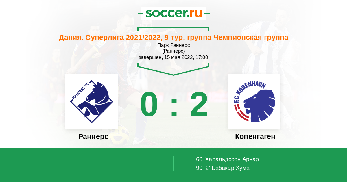 Протокол матча Раннерс против Копенгаген