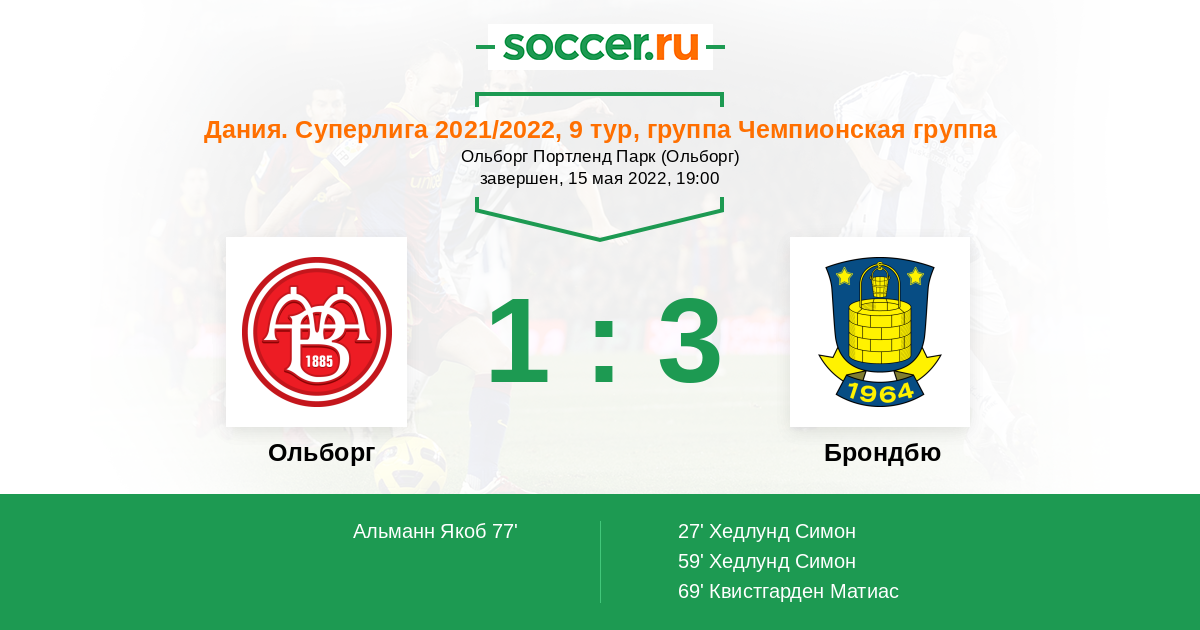 Протокол матча Ольборг против Брондбю