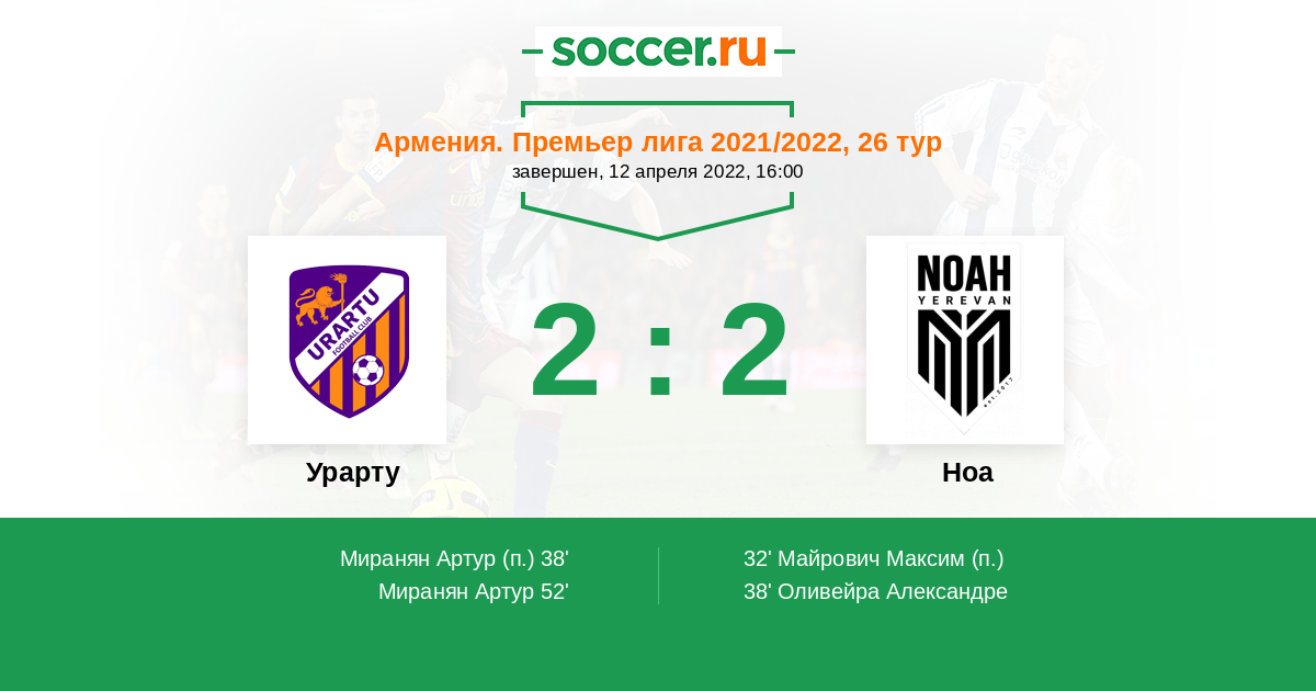 Протокол матча Урарту против Ноа