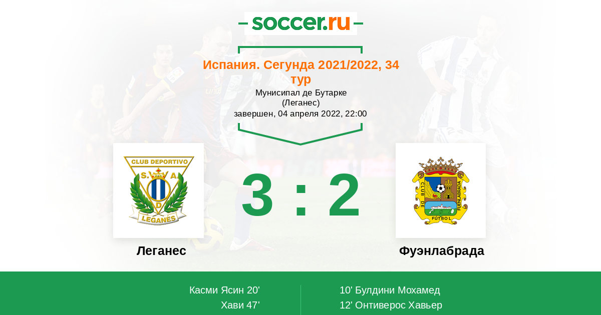 Протокол матча Леганес против Фуэнлабрада