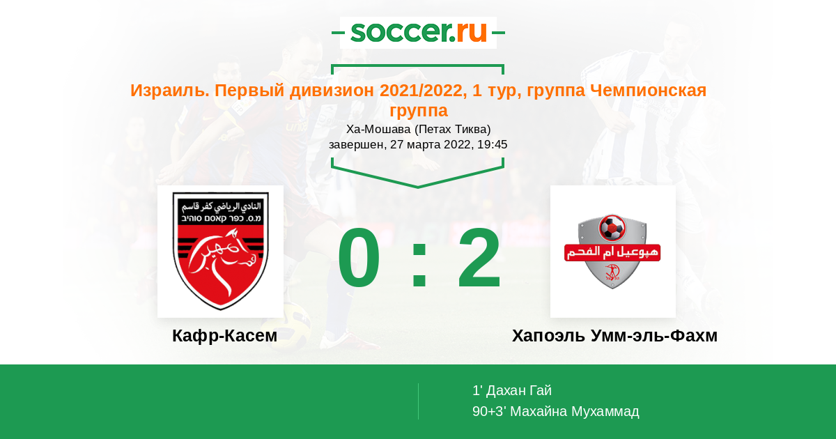 Протокол матча Кафр-Касем против Хапоэль Умм-эль-Фахм
