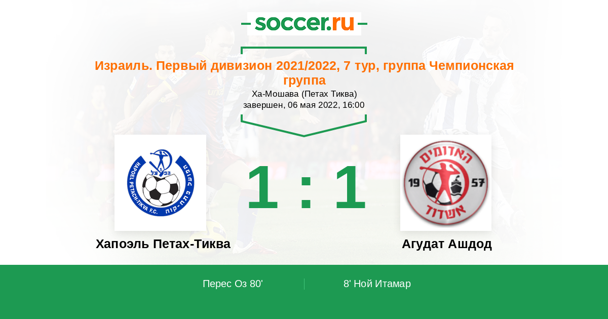 Протокол матча Хапоэль Петах-Тиква против Агудат Ашдод