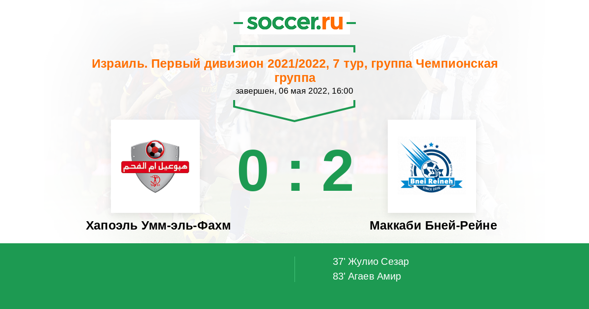 Протокол матча Хапоэль Умм-эль-Фахм против Маккаби Бней-Рейне