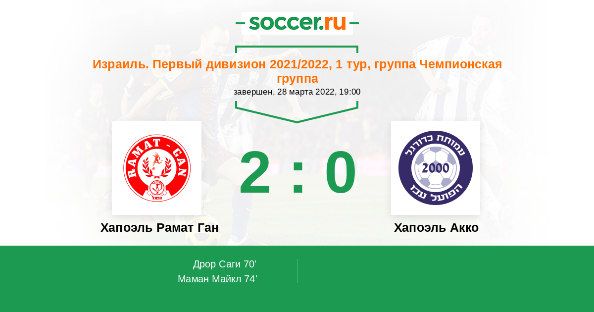 Протокол матча Хапоэль Рамат Ган против Хапоэль Акко