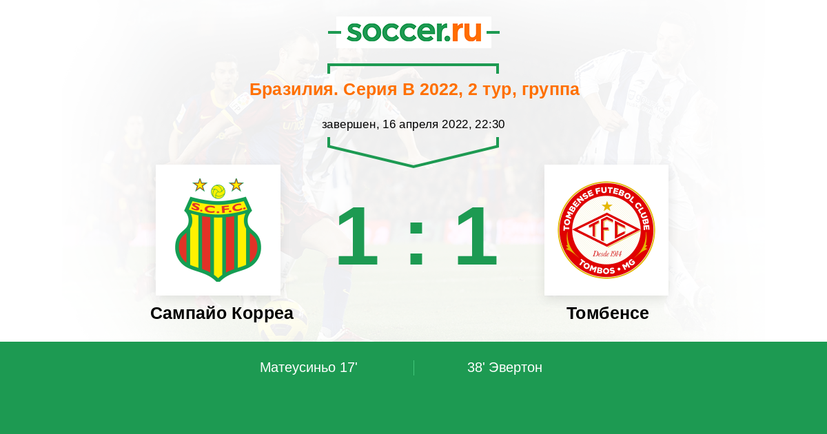 17' (1:0) Матеусиньо (2) (Андре Луис (5))