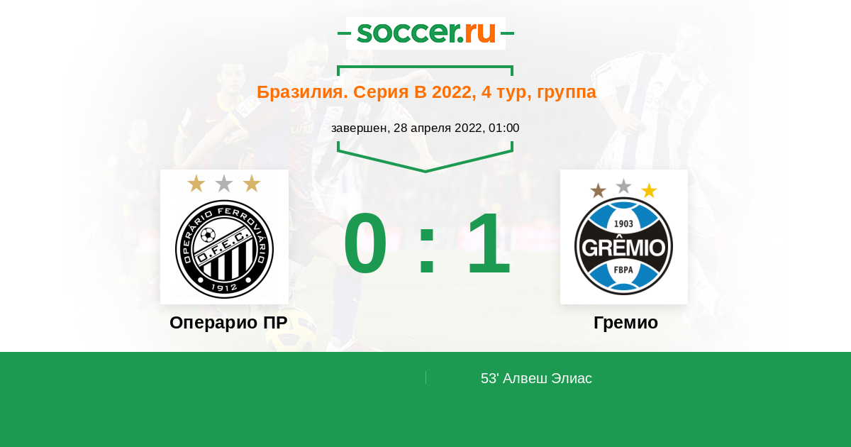 Протокол матча Операрио ПР против Гремио