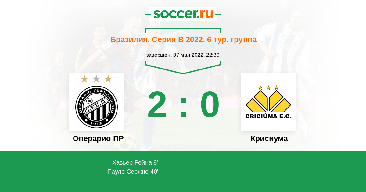 Протокол матча Операрио ПР против Крисиума