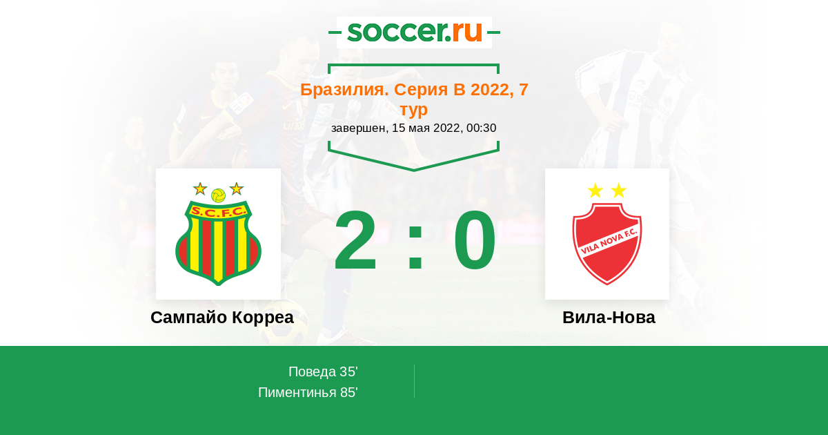 Протокол матча Сампайо Корреа против Вила-Нова