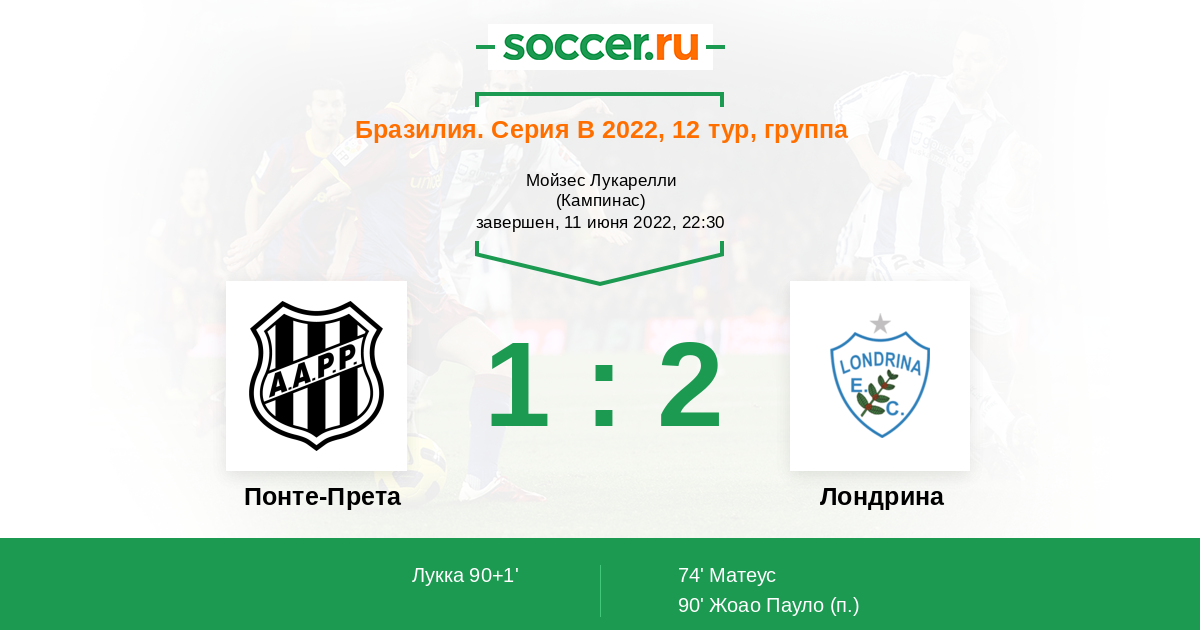 90+1' (1:2) Лукка (10) (Маркес Игор (22))