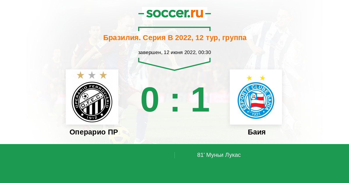 Протокол матча Операрио ПР против Баия