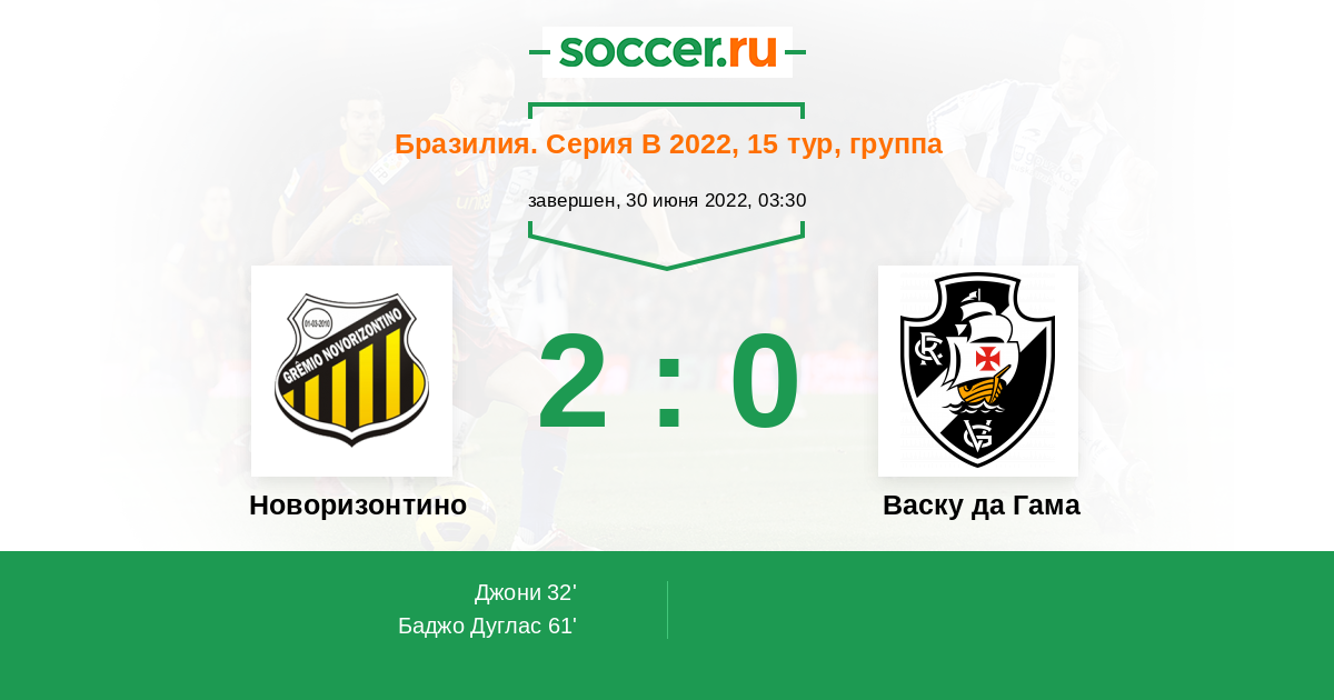 Протокол матча Новоризонтино против Васку да Гама