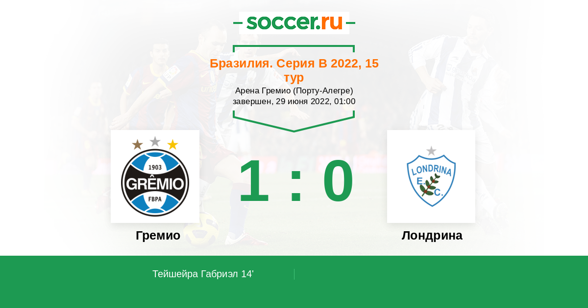 14' (1:0) Тейшейра Габриэл (17) (Соуза Диего (29))