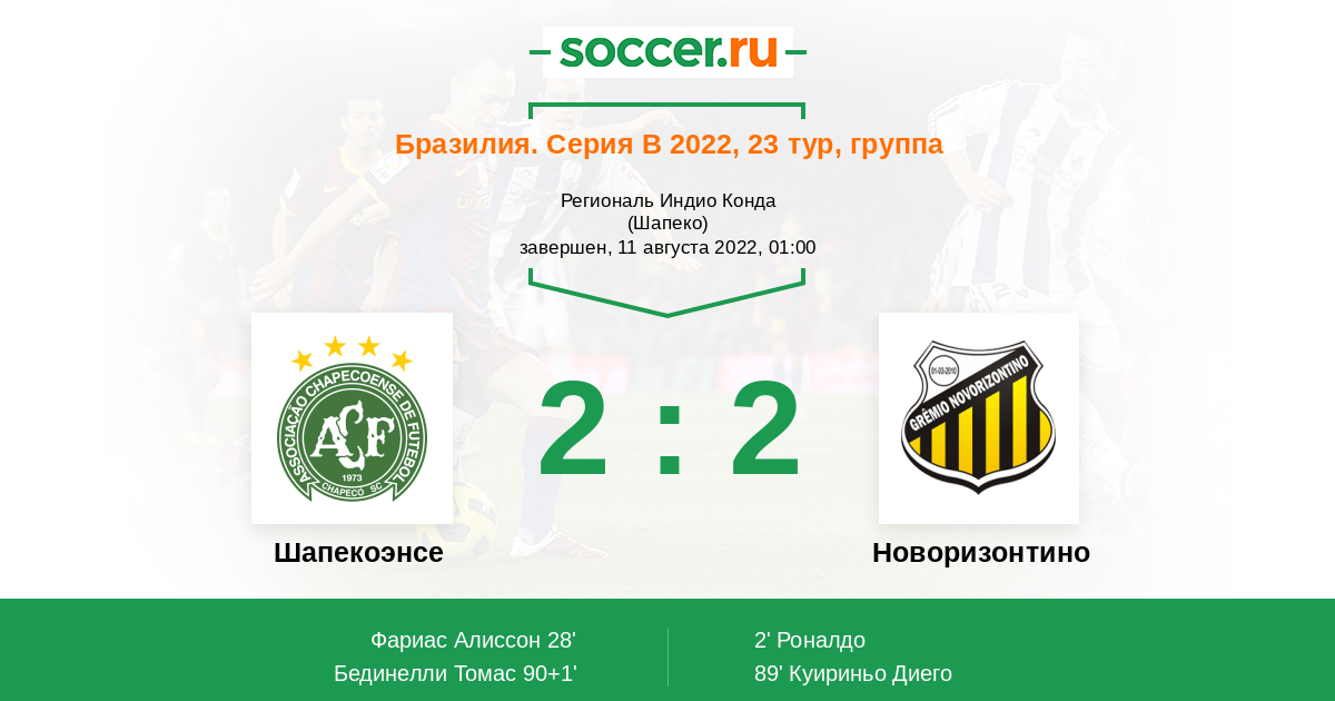 Протокол матча Шапекоэнсе против Новоризонтино