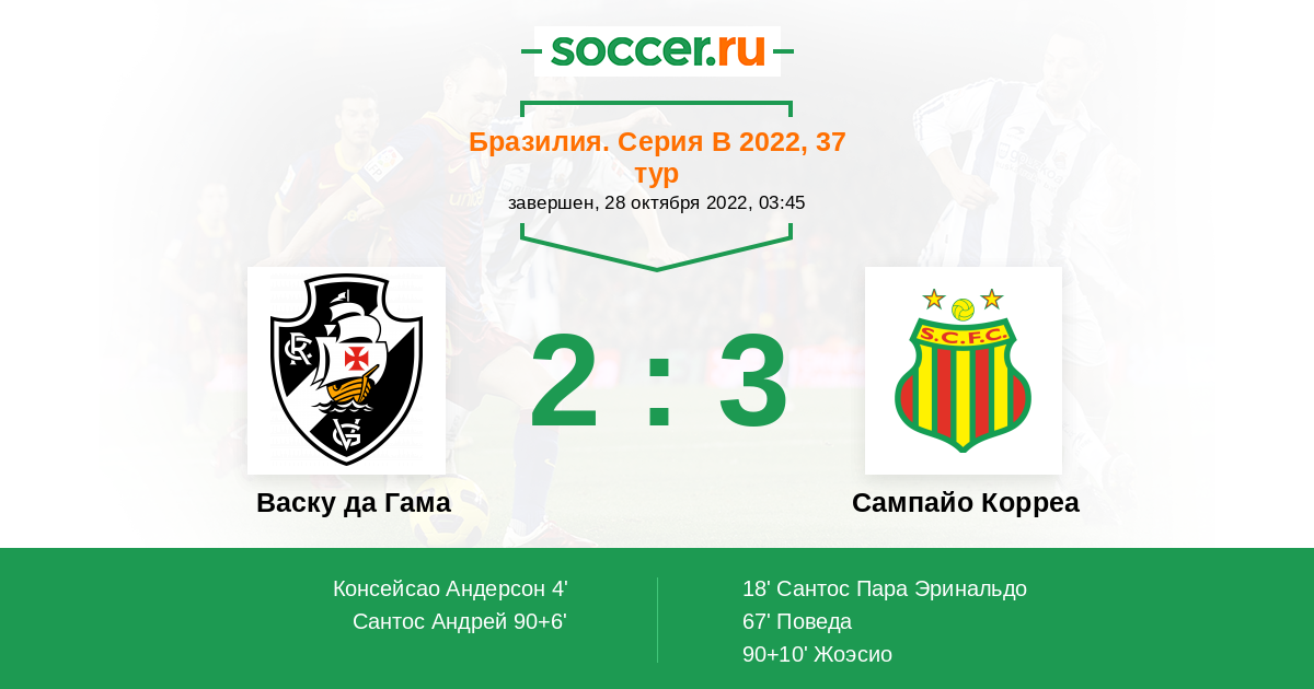 Протокол матча Васку да Гама против Сампайо Корреа