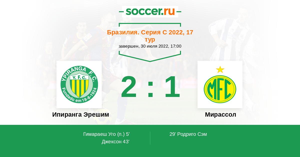 Протокол матча Ипиранга Эрешим против Мирассол