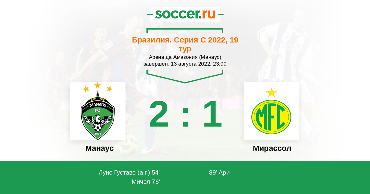 Протокол матча Манаус против Мирассол