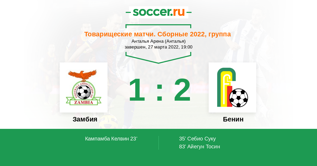 Протокол матча Замбия против Бенин