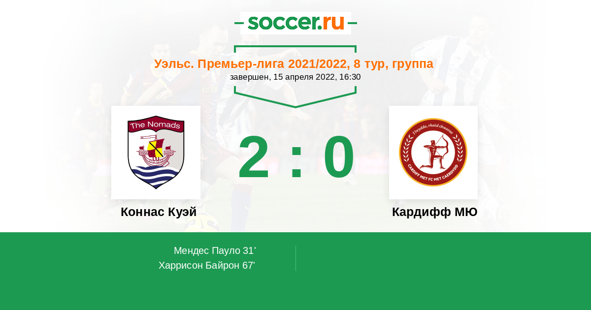 Протокол матча Коннас Куэй против Кардифф МЮ