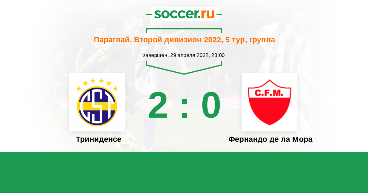 Парагвай. Второй дивизион 13.06.2021 Триниденсе Логотип футбольный клуб Триниденсе (Асунсьон) 1:1 Логотип футбольный клуб Фернандо де ла Мора Фернандо де ла Мора