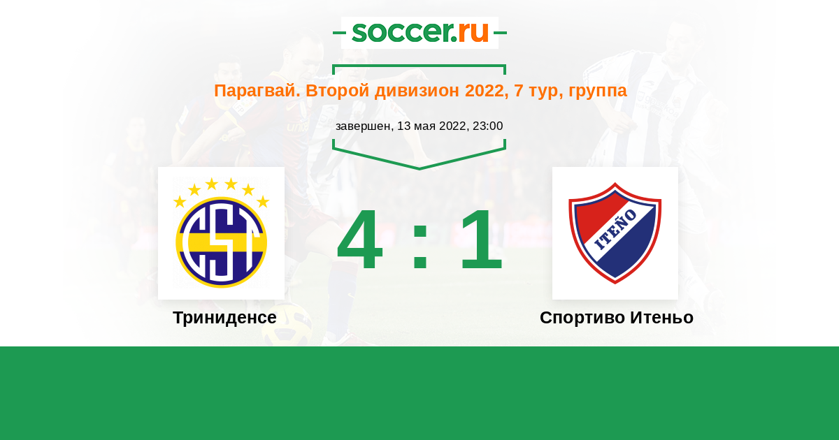 Парагвай. Второй дивизион 21.08.2022 Спортиво Итеньо Логотип футбольный клуб Спортиво Итеньо (Ита) 1:3 Логотип футбольный клуб Триниденсе (Асунсьон) Триниденсе