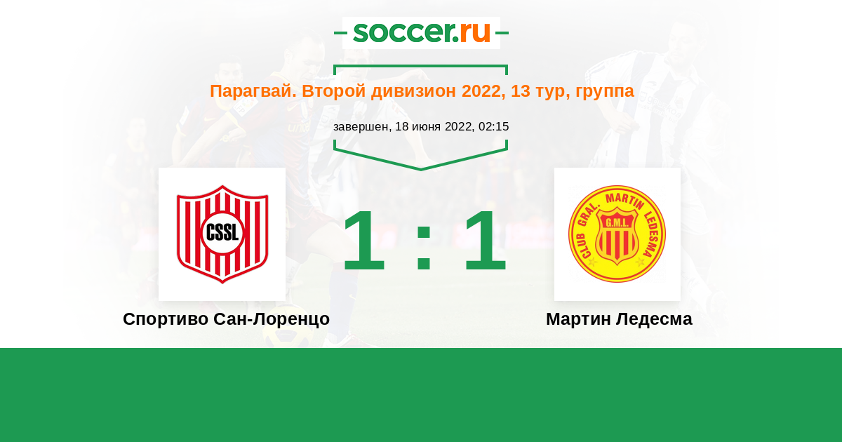 История матча Спортиво Сан-Лоренцо против Мартин Ледесма
