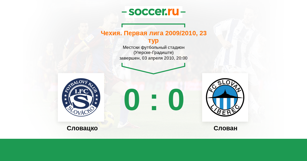 Чехия. Первая Лига 07.04.2007 Слован Логотип футбольный клуб Слован (Либерец) 1:1 Логотип футбольный клуб Словацко (Угерске-Градиште) Словацко