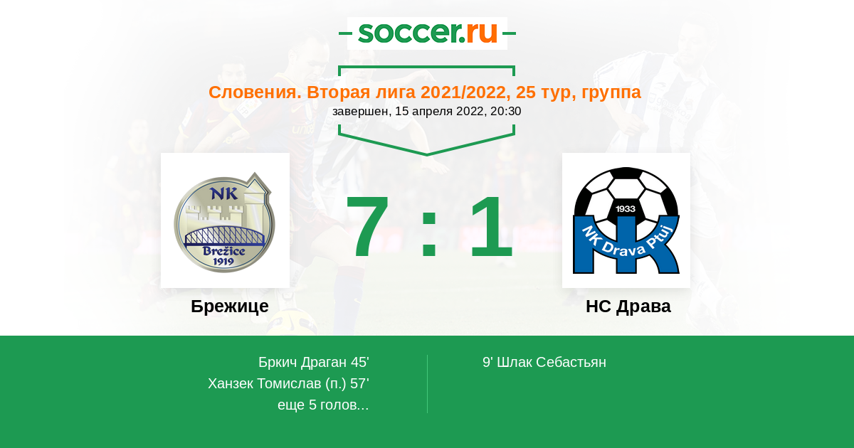 Протокол матча Брежице против НС Драва
