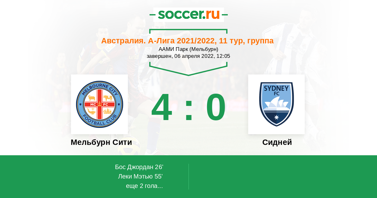 Протокол матча Мельбурн Сити против Сидней