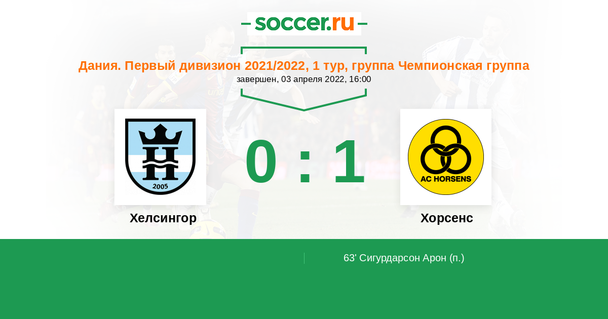 Протокол матча Хелсингор против Хорсенс