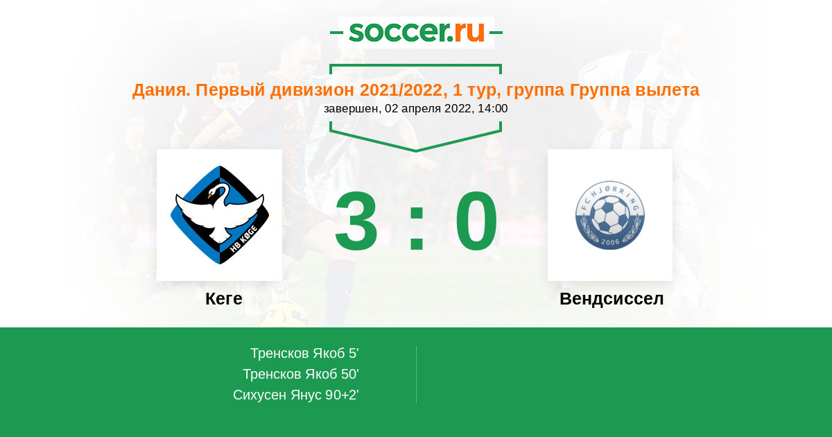 Протокол матча Кеге против Вендсиссел