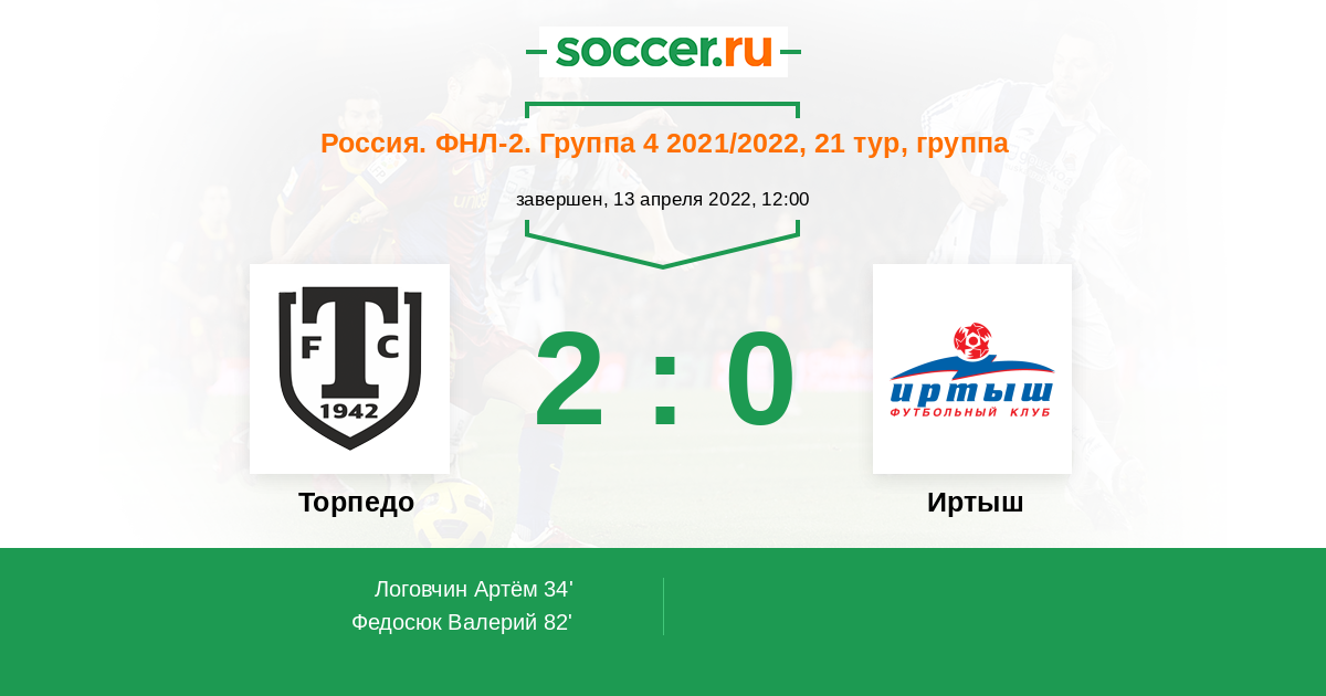 Протокол матча Торпедо против Иртыш