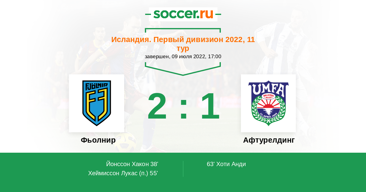 Протокол матча Фьолнир против Афтурелдинг