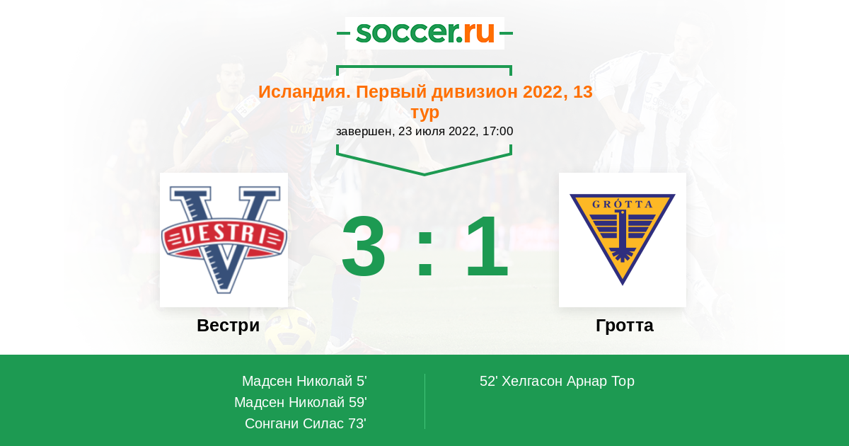 Протокол матча Вестри против Гротта