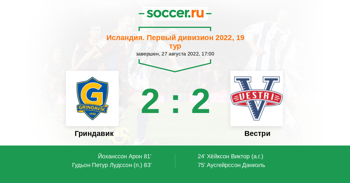Протокол матча Гриндавик против Вестри
