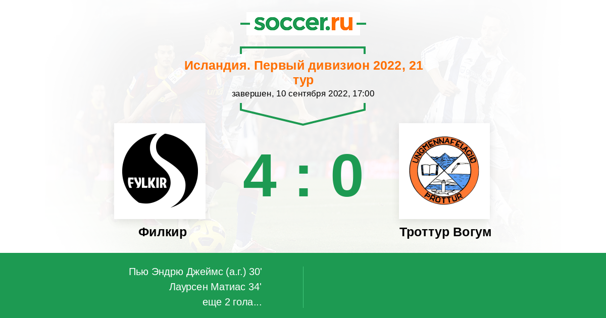 30' (1:0) Автогол Пью Эндрю Джеймс